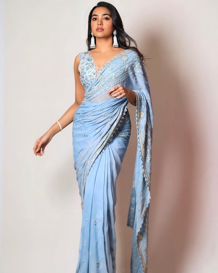 తాజాగా యాంగ్రీ స్టార్ రాజశేఖర్ కూతురు శివాత్మిక రాజశేఖర్ నుండి బ్లూ కలర్ చీర మరియు స్లీవ్ లెస్ బ్లౌజ్ ధరించి పోజులిచ్చింది.ఈ ఫోటోలు నిజానికి ప్రజల మరియు చిత్ర నిర్మాతల దృష్టిని ఆకర్షిస్తున్నాయి.కానీ సమయం మాత్రమే ఆమెకు అవకాశాలను తెస్తుంది.సినిమాల్లో అవకాశాలను వెతుక్కోవడానికి వృత్తిపరమైన ప్రతి ప్రయత్నాలను చేస్తున్న ఆమె తన తొలి చిత్రం దొరసానితో ఇప్పటివరకు గుర్తింపు తెచ్చుకుంది.